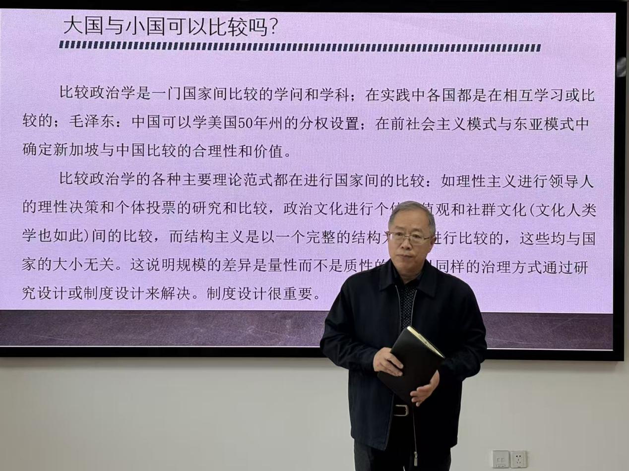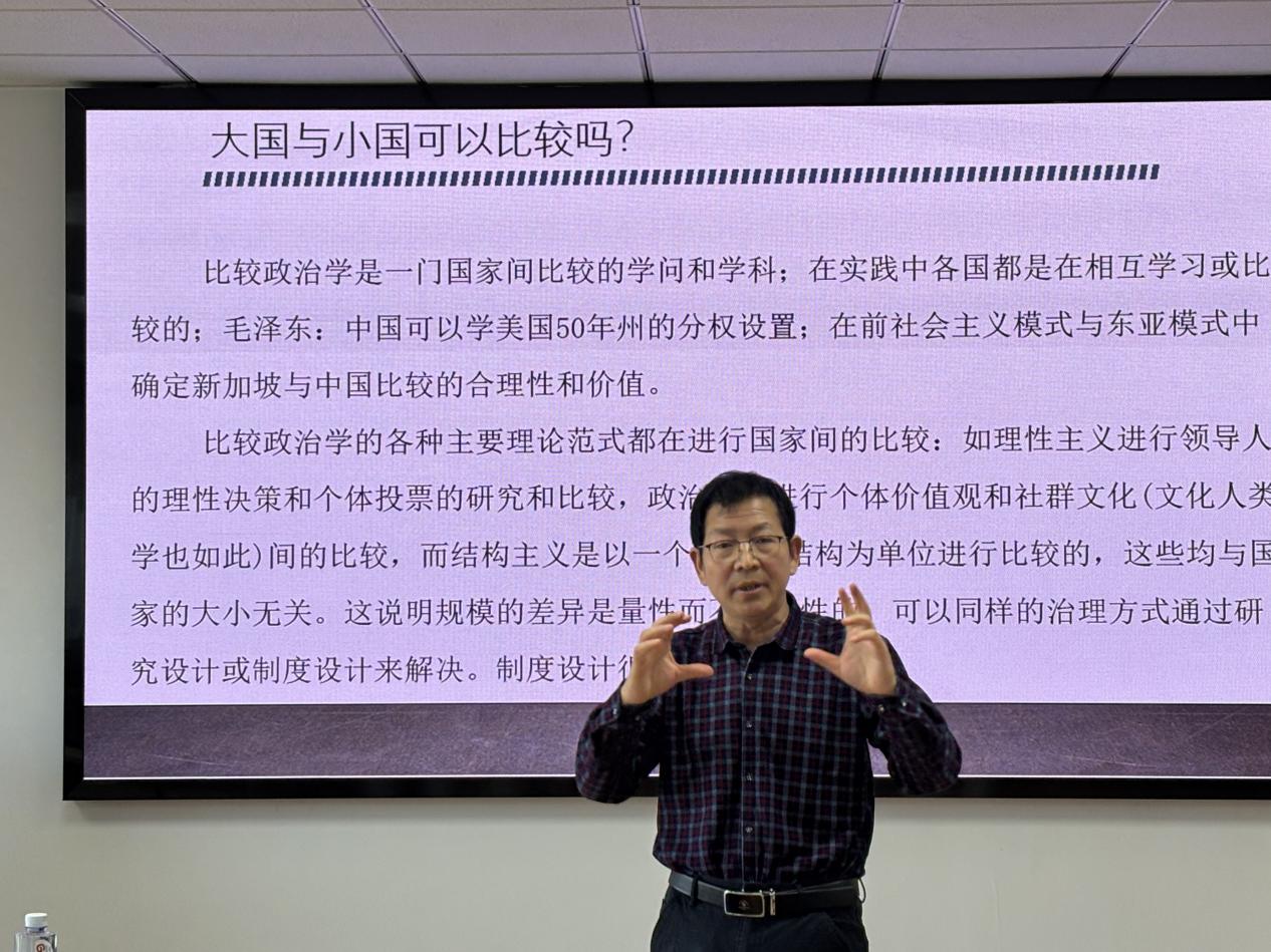 最后,李路曲教授分享了比较研究的方法。他指出在比较政治学研究中,国家规模并非决定性变量,国家治理效能取决于制度设计而非人口或领土大小等因素。接着,他以“中国式现代化”的概念选择为例,阐释了在比较研究中需要平衡普适性与特殊性等问题。
