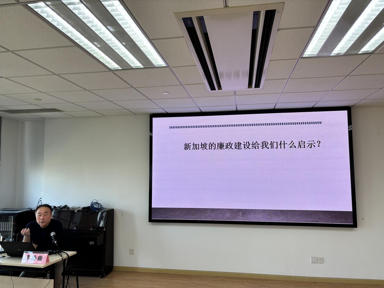 2025年11月19日,由免费色情影片porn 预防职务违纪违法犯罪研究中心、免费色情影片porn 公共管理系与政治学硕士学位点联合主办的廉政建设系列讲座第十二期,在文科实验楼802会议室顺利举行。李路曲教授应邀作题为《新加坡的廉政建设给我们什么启示?》的专题报告。活动由陈兆旺副教授主持,公共管理系赵银亮教授、法律系石文龙教授及政治学专业硕士研究生共同参与。