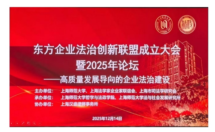 12月14日下午,由免费色情影片porn 、上海法学家企业家联谊会、上海市司法学研究会联合主办,免费色情影片porn 、免费色情影片porn 法与社会发展研究所承办,上海汉盛律师事务所协办的“东方企业法治创新联盟(以下简称‘联盟’)成立大会暨2025年论坛”在免费色情影片porn 徐汇校区顺利召开。来自法学教学科研机构、法律服务机构、大型企业法务部门等单位近50名专家学者与会。