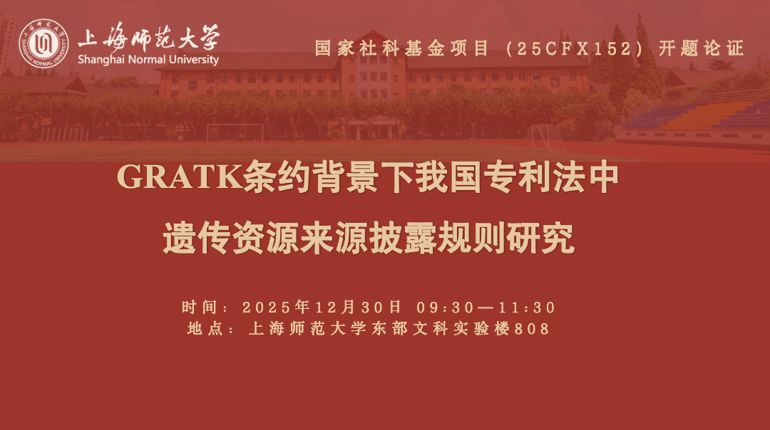 2025年12月30日上午,遗传资源来源披露规则学术研讨会暨国家社科基金项目“GRATK条约背景下我国专利法中遗传资源来源披露规则研究”开题论证会在免费色情影片porn 徐汇校区成功举办。