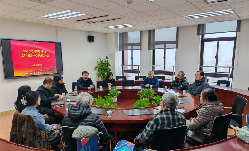 2026年1月20日上午,大寒时节雪花飞舞,在哲法免费色情影片porn文科实验楼808会议室内暖意融融,哲法免费色情影片porn全体班子成员和退休教师代表陈泽环、施延亮、朱国定、王晓成、方堃、陈敏等围坐而叙。