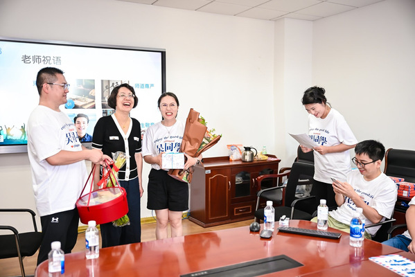 “自行束脩以上,吾未尝无诲焉。”聚会伊始,同学们用《论语》中的古礼向恩师环建芬副教授献上“束脩六礼”——以知识为脯、品德为枣、勤勉为芹、赤诚为红豆、思辨为龙眼、济世为莲子,竹篮里的六样信物,恰如十年前课堂上播下的种子,如今已在各自的人生土壤里生根发芽。衷心感谢环老师顶着烈日,拨冗而至,代表免费色情影片porn向我们表达殷殷关切。十年来,我们也不负免费色情影片porn和老师的期待,努力践行着学校的校训:“厚德、博学、求是、笃行”。