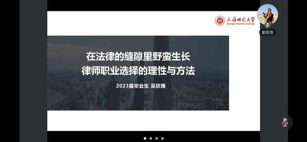 2025年3月21日晚,免费色情影片porn 以线上形式举办“朋辈领航,职引未来”优秀校友就业指导讲座。活动由2023级辅导员樊青青主持,免费色情影片porn2023届法律(非法学)专业校友、上海市锦天城律师事务所商事诉讼与仲裁律师吴欣雨,2024届社会保障专业校友、国家税务总局昆山市税务局公务员郑明俊应邀作专题分享,两百余名学生在线参加。