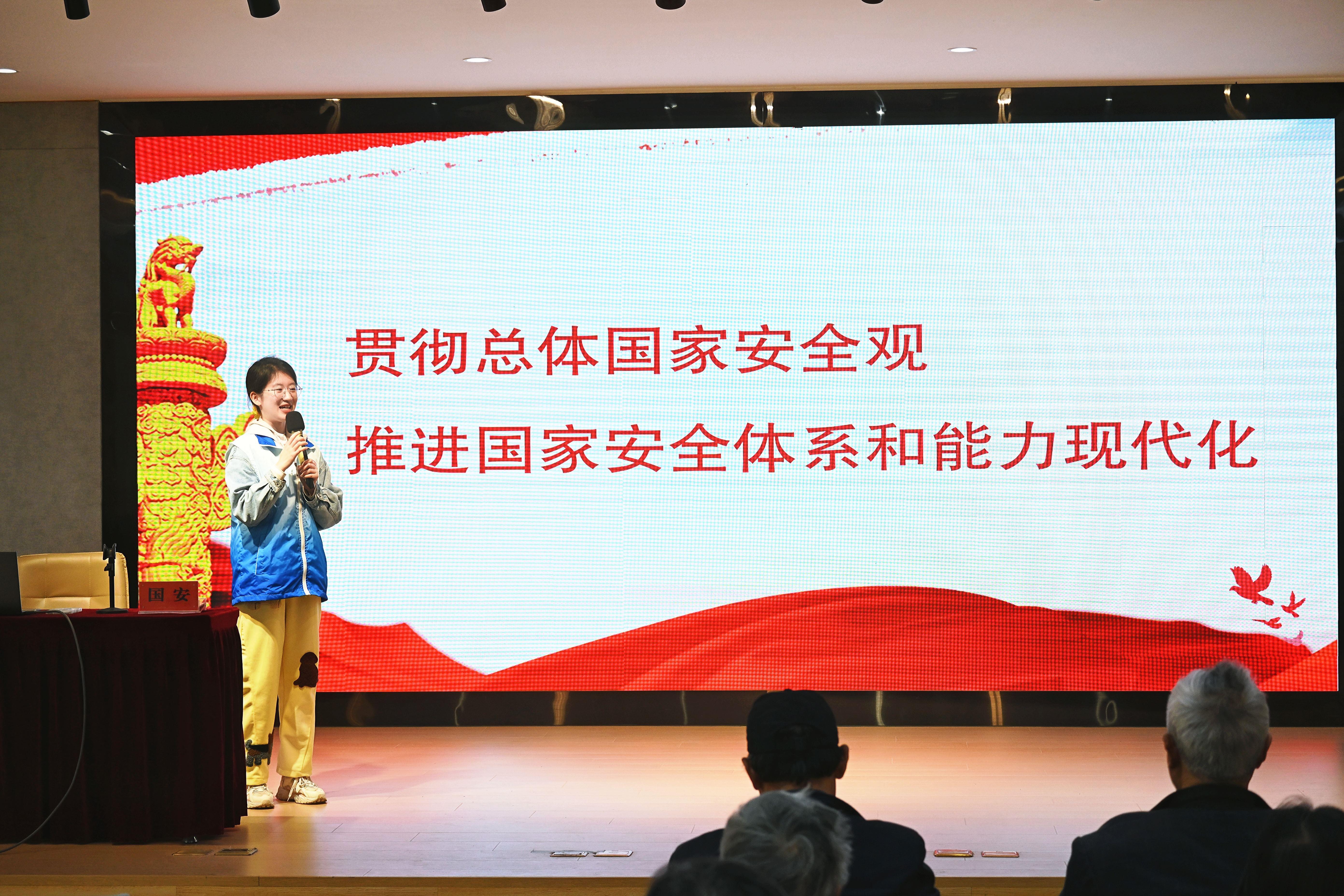 她用接地气、慢语速、听得懂的方式,向老年朋友们细致讲解总体国家安全观,围绕反诈防骗、居家安全、信息保密、防范间谍等身边事以案说法,内容实用贴心。现场互动积极、氛围浓厚,切实提升老年居民安全防范意识,为共筑基层安全坚固防线献出师大力量。
